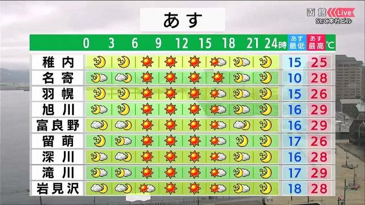 札幌など朝から晴れて、函館も午後を中心に青空が広がります。札幌の最高気温は28度ですが、カラッとした暑さです。