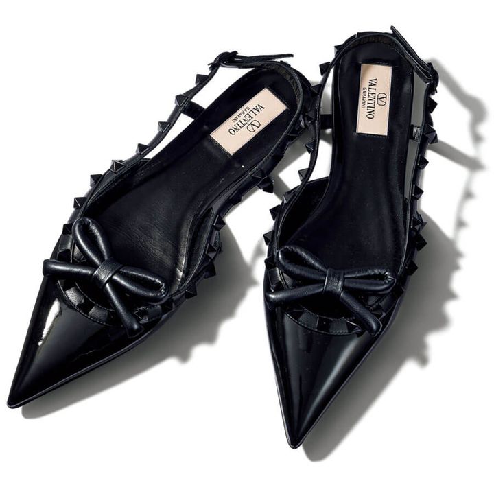リボン&ロックスタッズバックストラップフラットシューズ[H0.5cm]¥149,600/ヴァレンティノ ガラヴァーニ(ヴァレンティノ インフォメーションデスク)