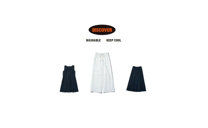 日差しや汗ジミを気にしてワードローブの幅をせばめないために、暑さ対策を完備したアイテムに目を向けるのもあり。肌が触れると涼しい、接触冷感やUVカットなどの効果で、一日中キレイな体を保てる。