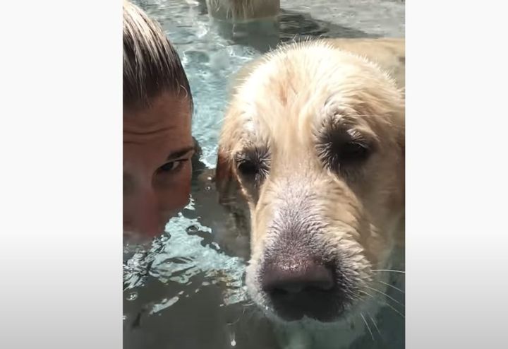 3. 泳ぐよりも楽しい?面白い水遊びに気づいた犬さん。