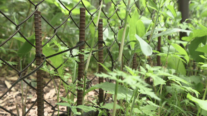 公園のまわりを囲うフェンスに沿うように、電気柵を設置。