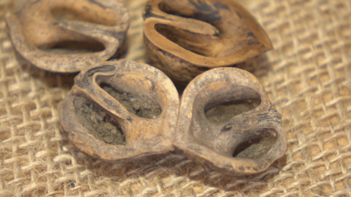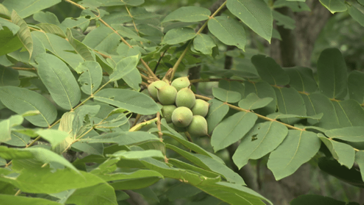 散策路に入ってすぐ、滝野管理センターの今井健太さんが見つけた実は、「オニグルミ」。