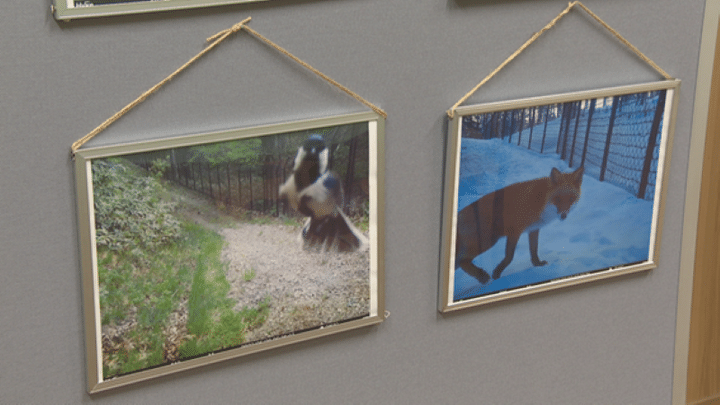 展示スペースでは、いろいろな野生動物の写真と、クマ対策をセットで発信している