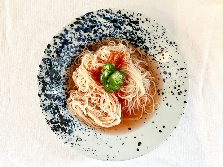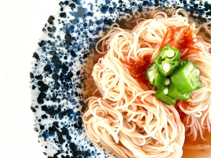 今回は、希釈したたれをそのままそうめんにかけてみました。(上にはオクラを乗せています)
