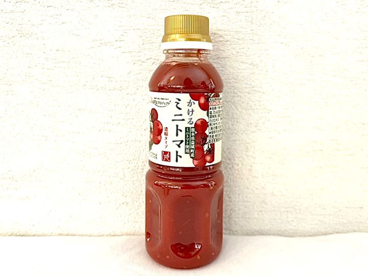 トマトの甘みと酸味、そしてしっかりしただしの味。ちょうど良い塩気もあり、普段の麺つゆより甘みが少ないため、さっぱりと食べられます。容量の半分以上がミニトマトで作られている「かけるミニトマト」。トマトの皮も入って素材のうま味をダイレクトに感じます。