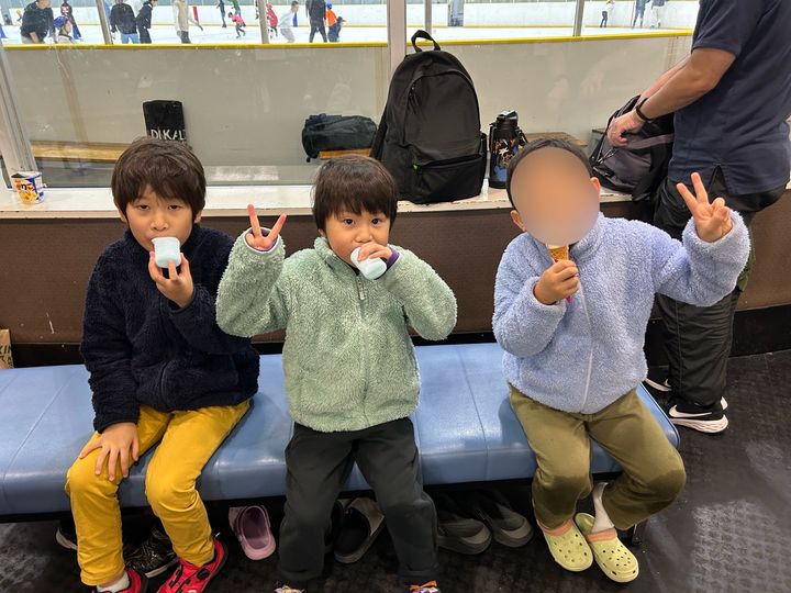 スケート初心者の長男、次男ですが最初の方は何回か転びながらもとっても楽しそうに滑っていました。