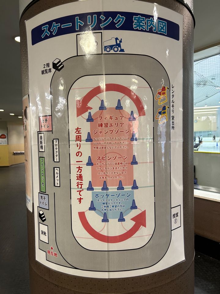 リンク内は衝突事故回避のために滑る向きが左回りの一方通行と決まっています。