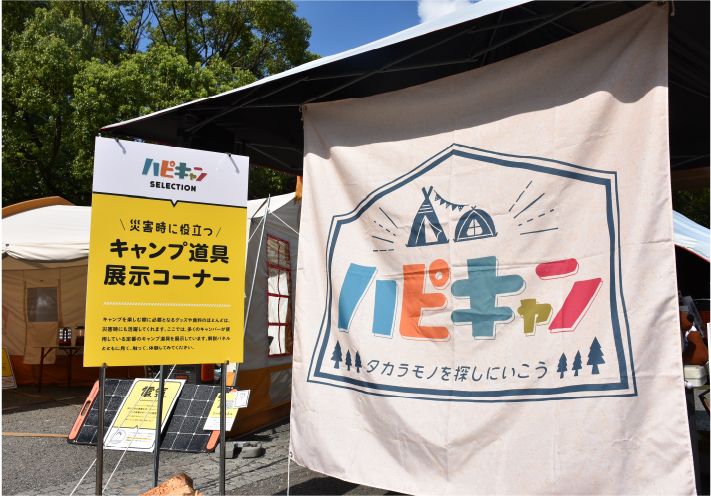 メ~テレの「ハピキャン!」がプロデュースする「防災×キャンプ」のコーナー。キャンプグッズで災害に備える方法などが学べます。