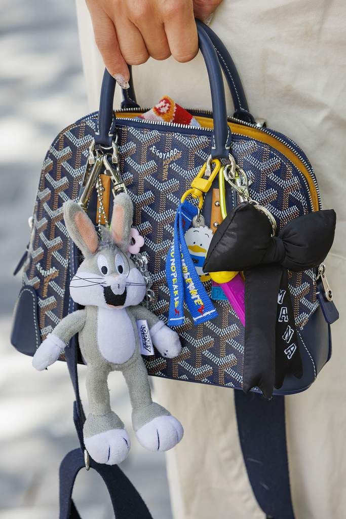 ゴヤールのバッグはカジュアルに斜めがけしたい日限定で、じゃらづけを楽しみます。バッグが小さいのでキーホルダーはうるさくなりすぎないように、ブルー系で統一。可愛いものがないか、娘とPLAZAやKIDDY LANDあたりをちょこちょこチェックするように。親娘で楽しんでいます。