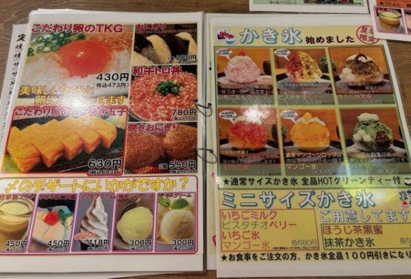 定食に一品メニューなど食事とともにミニサイズかき氷もいいですね♪自家製プリンなどのスイーツもあります。