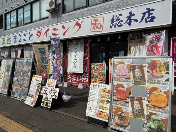 昼の営業が北海道産小麦使用の自家製うどんの「cafe Style うどんの力」。夏期限定でかき氷やってます。夜の営業が「北海道まるごとダイニング うまいっしょ! 総本店」。通信販売も手掛けてる三刀流のお店なんですね。