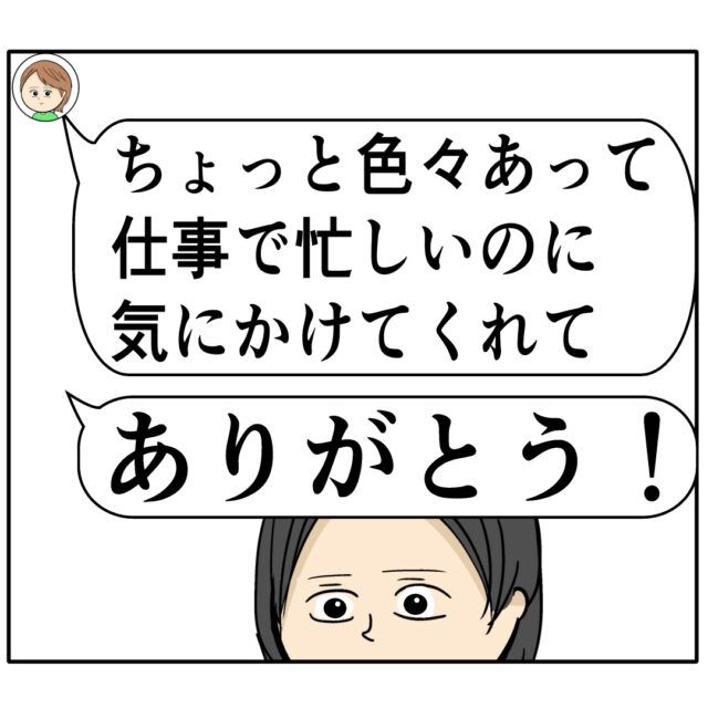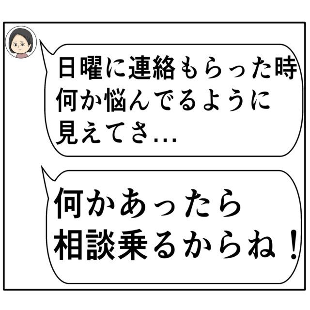 「日曜に連絡もらったとき何か悩んでるように見えてさ・・・」「何かあったら相談乗るからね!」マキさんからすみれさんを気遣うメッセージが届きました。