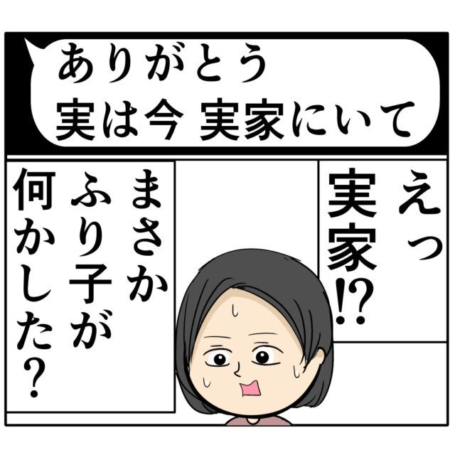 「ありがとう。実は今、実家にいて」すみれさんからの返信内容を見て「えっ実家!?まさかふり子が何かした?」と心配になるマキさん。