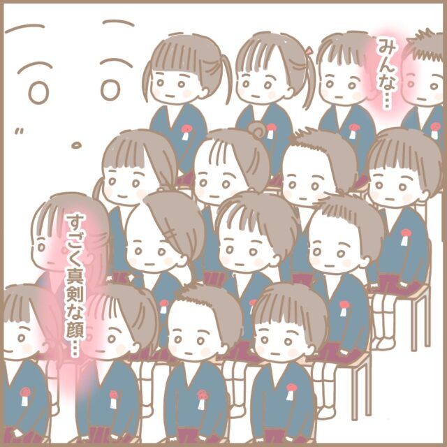 長い待ち時間をものともせず、真っ直ぐ前を向いて着席している子ども達、これが本当に最後なんだ、と真剣な様子が伝わってきますね!まるちゃんさん、子ども達へのエール、しっかり届けてください!