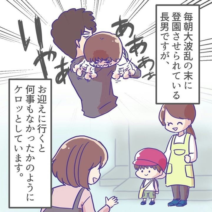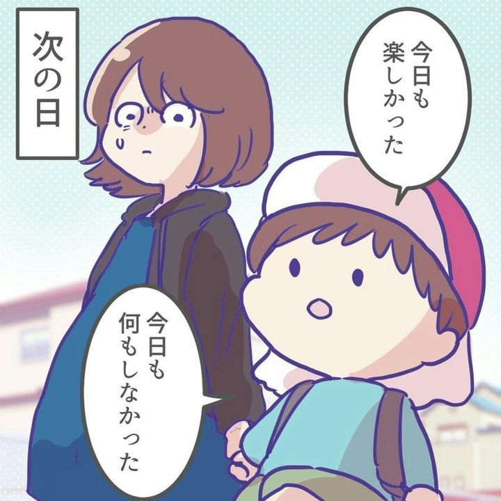 毎朝激しい登園拒否をするものの、降園時には「楽しかったと」話す息子。しかし、母親が園で何をしたのかと聞いても、「何もしなかった」と答えるばかりです。
