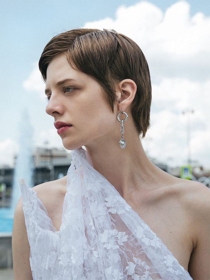 dress by SIABDULLAEVA, vintage sandals by RAID VINTAGE, single earring by 2 SICK