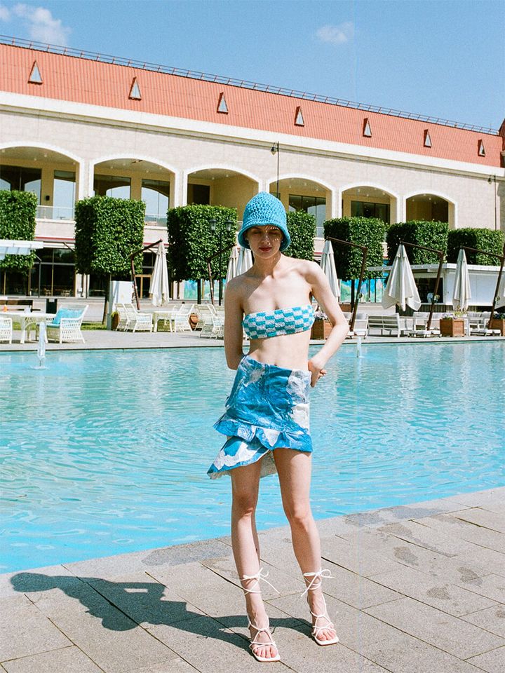 top and hat by JACOB CRO, skirt by CHELBAEVA, sandals by OBBA