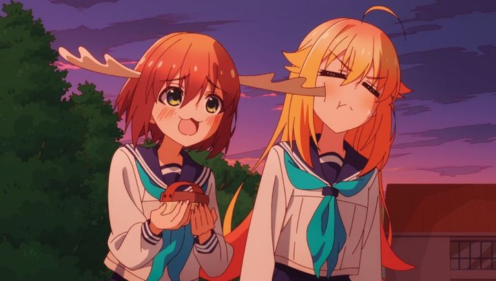 オープニングとはアニメの顔であり内容を映す鏡ですが、物語ももちろん、輪をかけて荒唐無稽な内容に。都立日野南高校で生徒会長を務める清楚キャラの虎視虎子(こし・とらこ/こしたん)が、電線にツノが引っかかっていた鹿乃子(しかのこ)のこ(のこたん)を助けたことからはじまるガール・ミーツ・シカ物語。自由気ままなのこたんにペースを乱され、どうしても隠しておきたい「元ヤン」の過去がバレそうになり右往左往、七転八倒する、そんなこしたんを愛でる30分です。物語の主な舞台となるのは、のこたんをお世話するためになぜか設立された「シカ部」の部室…なるほど、これは深く設定を考えるよりも感じるアニメ――というエクスキューズがそこかしこに、まるで奈良公園のシカばりに点在しています。