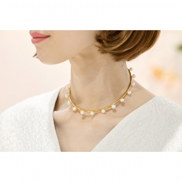 「今日はアクセもパールにして全身で白コーデに。いろいろと重ね付けしたい気分だったので、単調にならないように大きさを変えたり、デザイン性があるものを選ぶようにしてカジュアルなパールコーデを意識しました。特に気に入っているチョーカーはおしゃれな方が付けているのを見てずっと気になっていたもの。タイミングよく阪急でポップアップがあり、試着して購入しました。昔からパールは大好きですが、パーソナルカラー診断の結果で一番似合うアクセサリーといわれてから、より集めるようになりました」和田有美さん・35歳(165cm/4歳の男の子ママ)