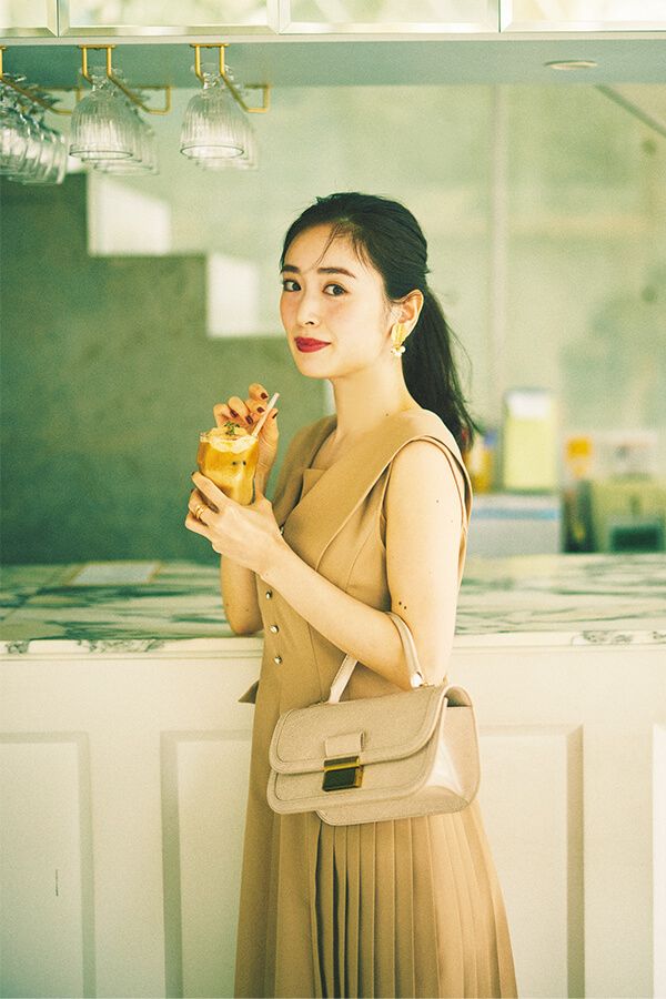 ワンピース¥17,600/Noëla イヤリング¥12,100/マージョリー・ベア(ココシュニック 新宿タカシマヤ店) リング¥3,900/Soie(ロードス) バッグ¥12,900/CHARLES & KEITH 靴¥7,700/オリエンタルトラフィック(ダブルエー)