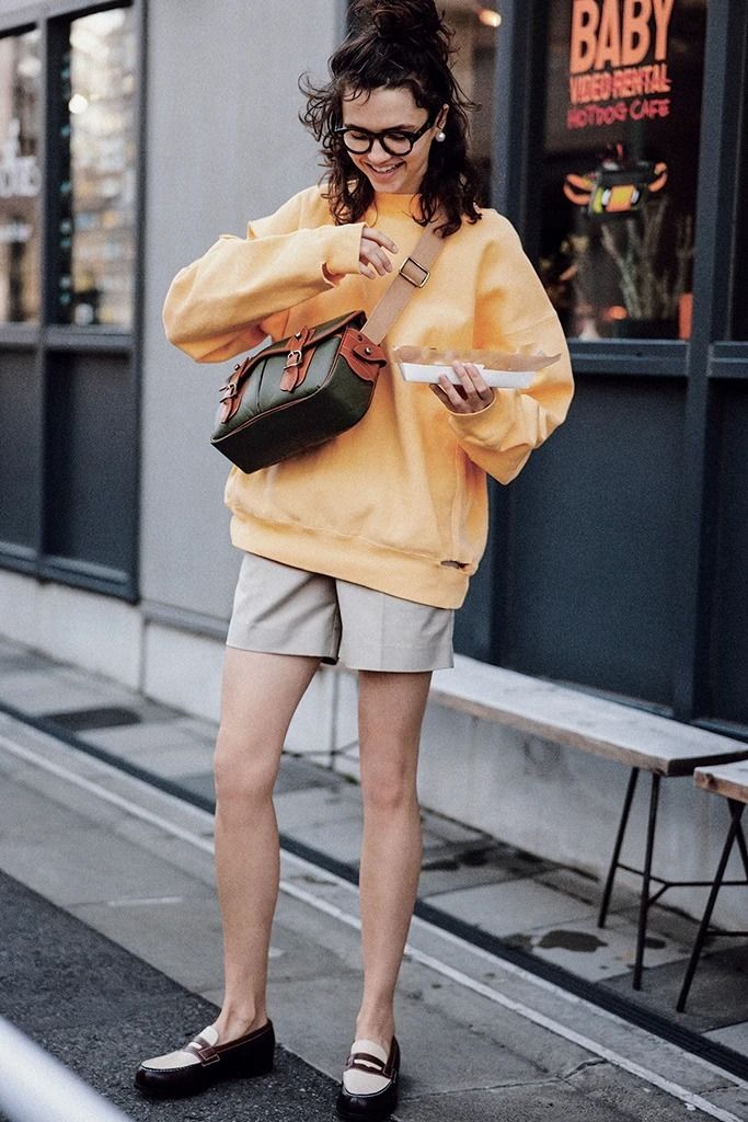 ぶかっとしたスエットに細身パンツの相性のよさは周知の事実。これからは丈を短くアップデート。さらにハーフパンツよりも丈の短いミニ丈や素肌の残るレースデザインを選び、センシュアルなギャップを。