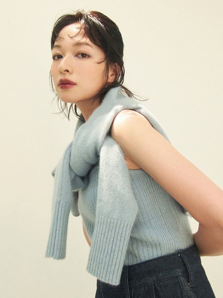 ビスチェ¥23,100、カーディガン¥36,300(共にティッカ/ティッカ)、パンツ¥26,400(ボニーウーブン/クローバーズ)