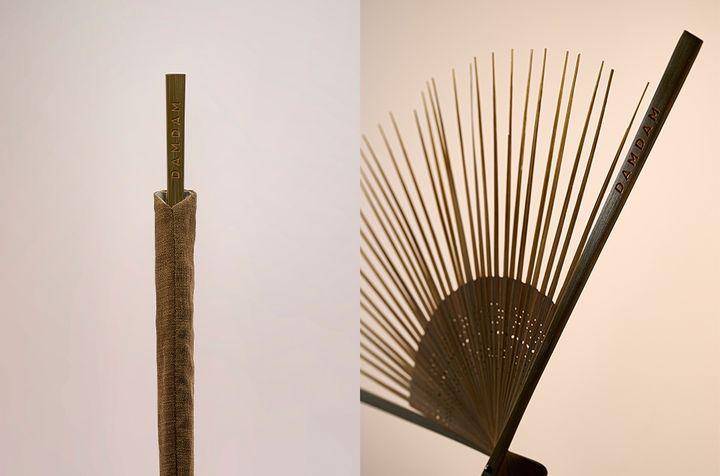 扇面に「DAMDAM」のキーカラーである抹茶グリーンの和紙を使用し、親骨にブランドロゴがあしらわれた今作は、京都や滋賀の職人が手作業で仕上げたもの。