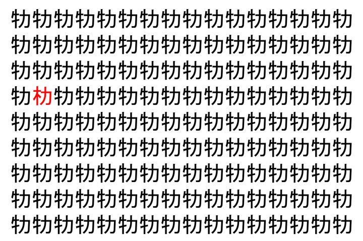 画像に並んだたくさんの「牞」という漢字。 その数144個なのですが・・・、実はその中に1つ違う漢字が紛れ込んでいます!!