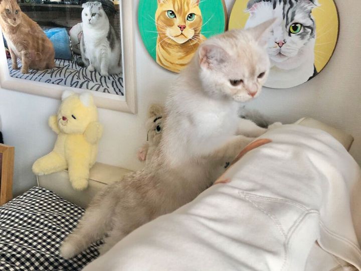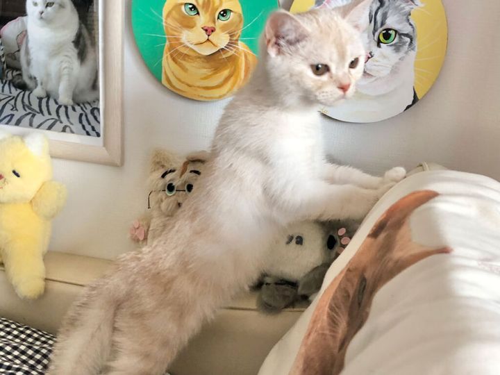 こんにちは。ぼくの名前はヤーヤだよ。みんなは「ヤーヤくん」って呼んでくれるよ。ぼくの前におうちで暮らしていた「ウーヤくん」と「ミーヤちゃん」から、ひと文字ずつプレゼントしてもらって「ヤーヤ」って名前になったんだよ。ぼく、とっても気に入ってるんだ。朝はパパとママのお顔をなめて起こすのがぼくの日課だよ。2023年12月に生まれたばかりのぼくの成長日記をみてね。本誌2024年9月号にて、わたなべとしふみさんによるヤーヤの紹介イラストを掲載しています。