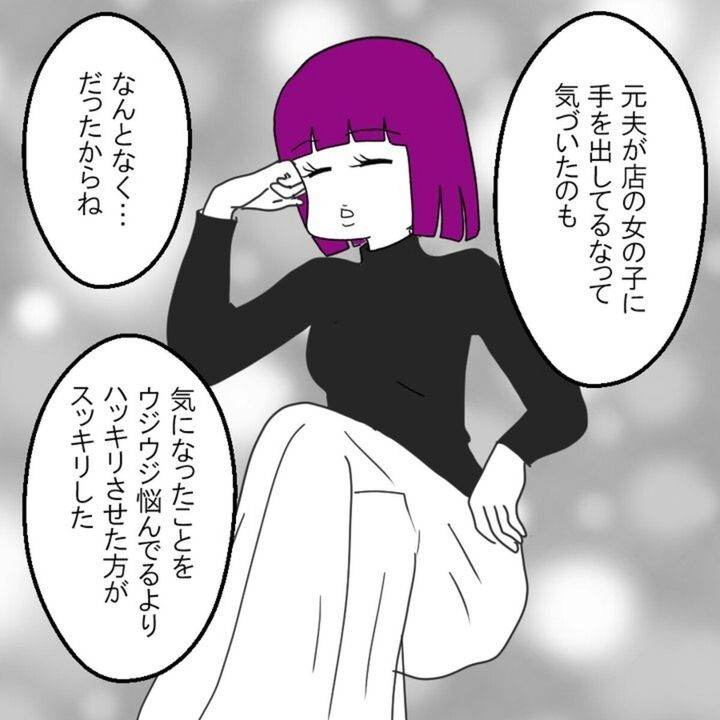 自分自身も不倫された経験から、小梅に寄り添った言葉をかける素敵な同僚。不倫が疑わしい女性客に心当たりはないようですが、何かを思い出した様子です。