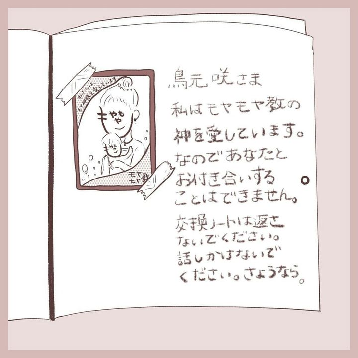 返された「交換ノート」から落ちたカードには、「宗教」を表す絵が描いてありました。そして交換ノートには、事実上お別れを意味する内容が…。