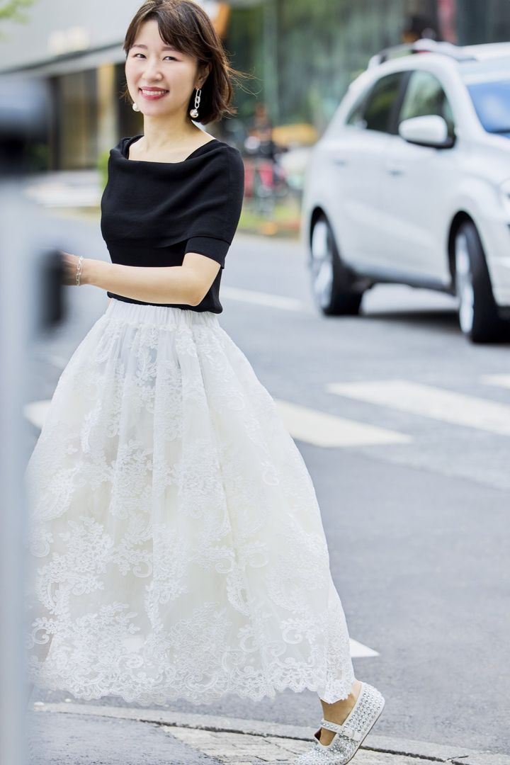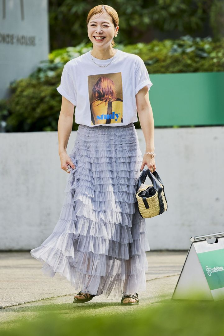 3. 【チュールコーデSNAP3選】ドラマチックなスカートが40代を盛り上げる!