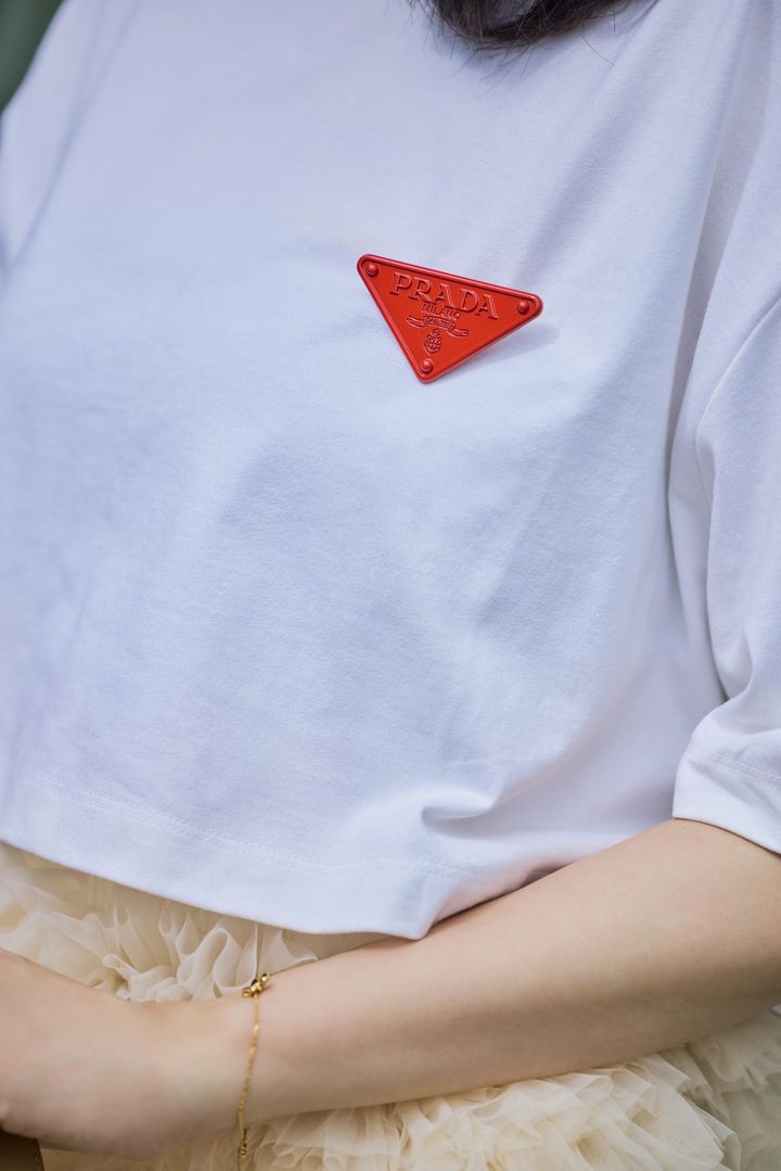 PRADAの短丈Tシャツを着るだけでかわいくてバランスが良いんです。