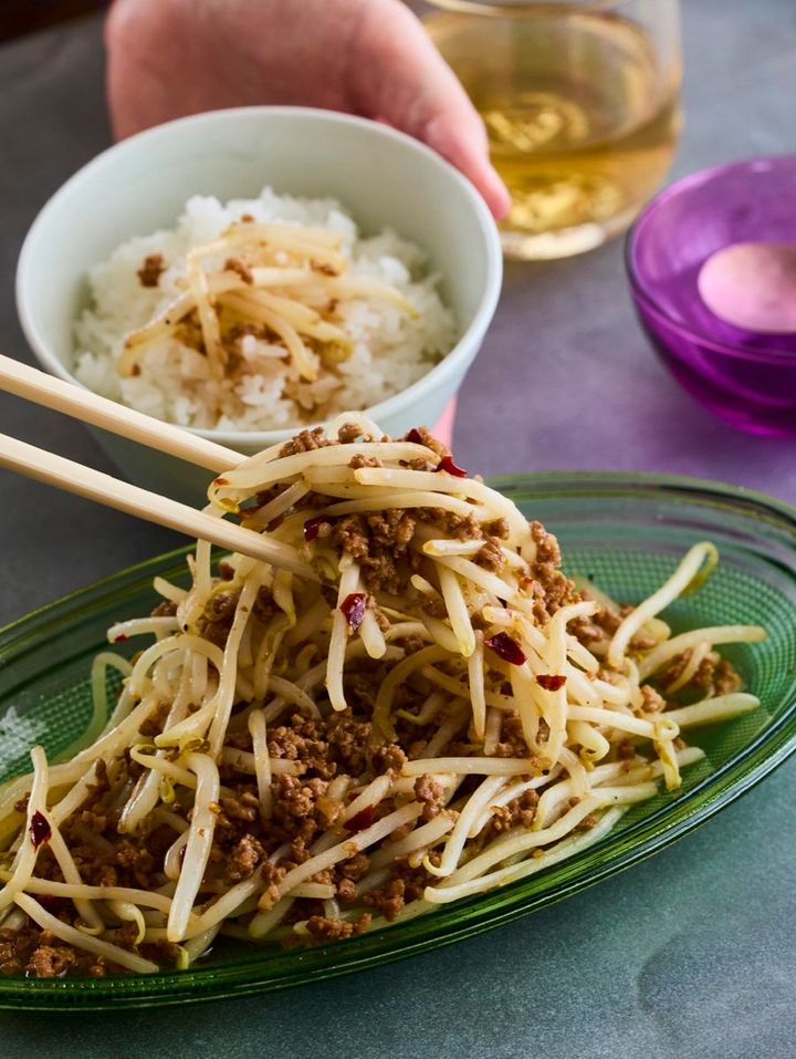 お次は「もやし炒め」にアレンジ。しっかり味の台湾ミンチが調味料の役割をしてくれます。おかずにも、おつまみにもぴったり!