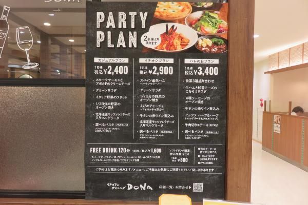 店頭には、お子様メニューやパーティープランの案内もありました。