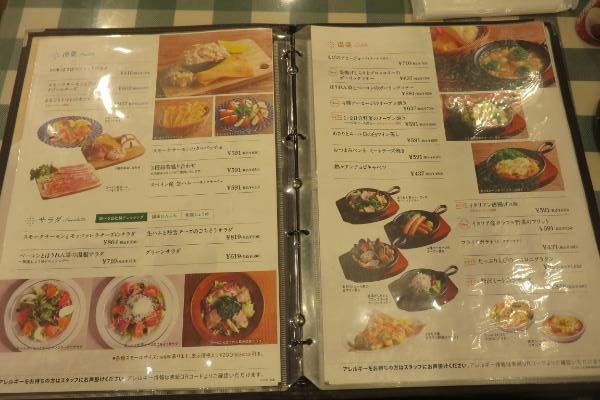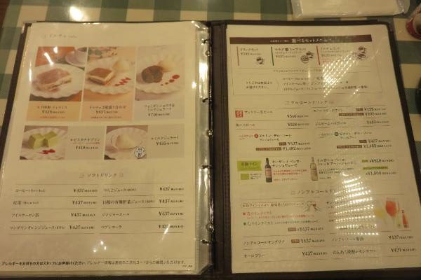 メニュー表には、ランチ、ディナー、ティータイム、帰宅前の一杯等、時間帯を選ばずに利用出来る、多種多様なメニューが掲載されていました。