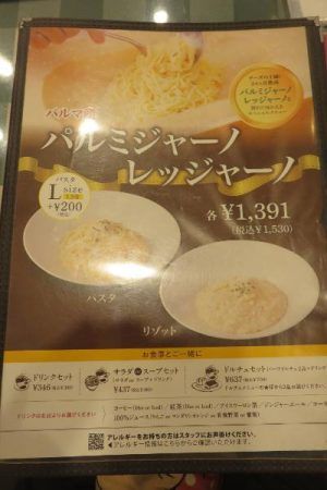 選ぶパスタの種類によって値段が決まり、最安値は1,350円でした。期間限定メニューも選ぶ事が出来るので、何度来ても楽しめそうです。パスタの他に、ドリンク、季節のスープ、サラダが付いてきます。ドリンクの選択肢はソフトドリンクだけではなく、ワインとビールも含まれていました。また、デザートもランチ価格で追加する事が出来ます。