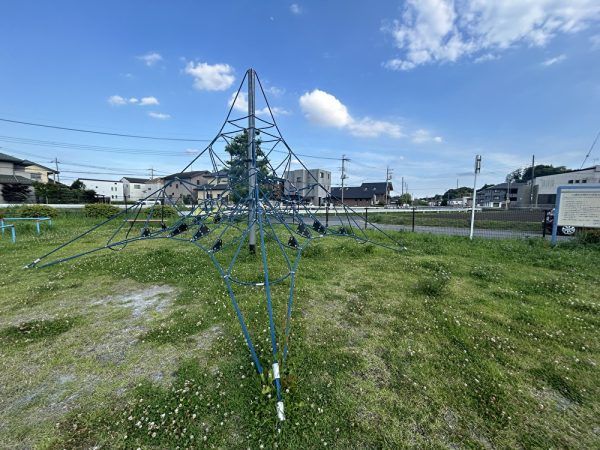 あやめ公園の遊具は豊富です。大きなお子さんから小さなお子さんまで幅広く遊ぶ事ができます。まずはロープ状のジャングルジムです。従来型の格子状のジャングルジムよりも難易度が高いので大きなお子さんにお勧めです。