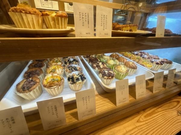 1階の入口を入ると、マフィンとチーズケーキが並ぶショーケースが目に飛び込んできます!