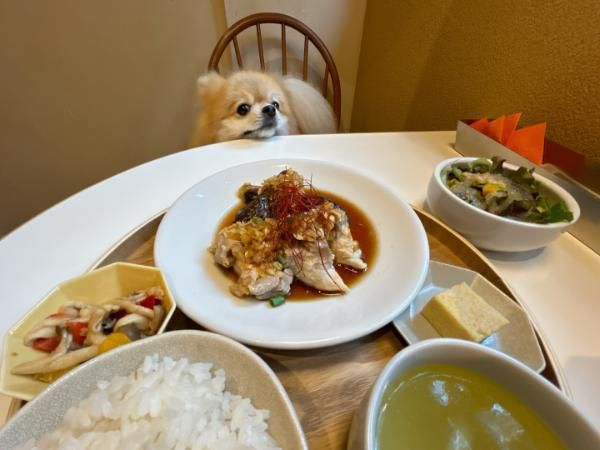 もうお店に入った時から、鼻がきく愛犬はソワソワ。私に怒られない範囲でお鼻をお料理に全力で近づけて匂いを確認していました!