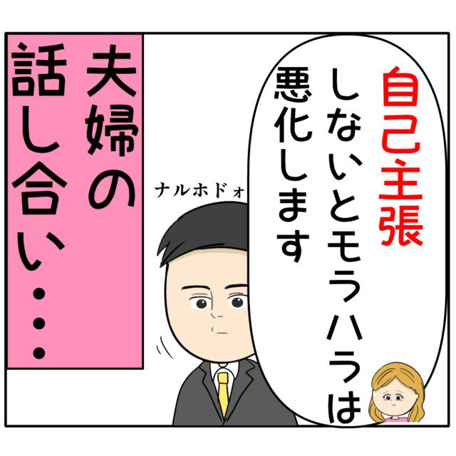 「自己主張しないとモラハラは悪化します」ときっぱり。良し男さんの味方であるとアピールし親身になってアドバイスするふり子さんですが、