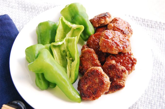 ただ、個人的には合いびき肉がちょっと…。シンプルな味付けだと肉の臭みを感じやすいので、豚か鶏のひき肉の方がいいなと思いました。あくまでわたしの好みですけどね。次回は、鶏ひき肉に青じその千切りを加え、こんがり焼いた塩味のつくねと生ピーマンを合わせてみようと思います。