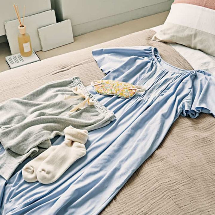 「部屋着のまま寝る人もいますが、それでは脳がうまく切り替わりません。目をつぶっていても人の気配がわかるほど、肌から得る情報は目よりも敏感。寝る前に気持ちよい素材のナイトウェアに着替えることを習慣にすれば安心して眠る準備を脳が始めてくれます」(Salon de nanadecor)