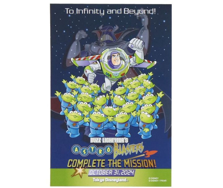 A4サイズ。スペシャルイベント「バズ・ライトイヤーのアストロブラスター“コンプリート・ザ・ミッション!”」のロゴとクローズの日にちがプリントされています。