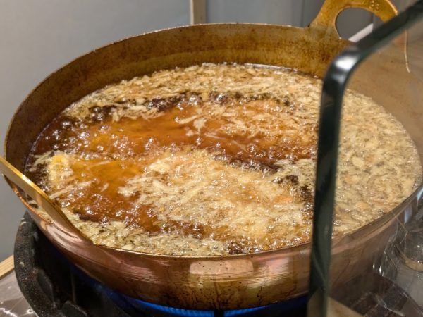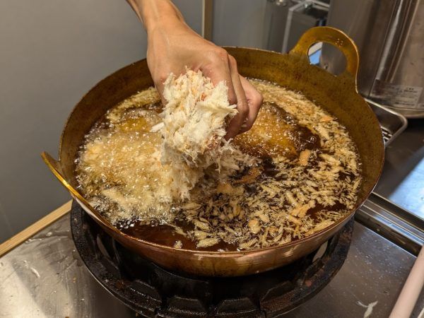 粗めのパン粉を大きなアジをまぶします。この大きなアジはヒラアジといって、身は細かくて上品でコクがあるそうです。