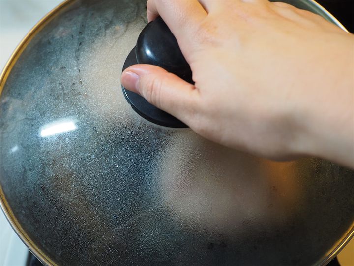 6. 4分ほど経ったら裏返し、さらに4分ほど焼き、火を止めて予熱で火を通していく。