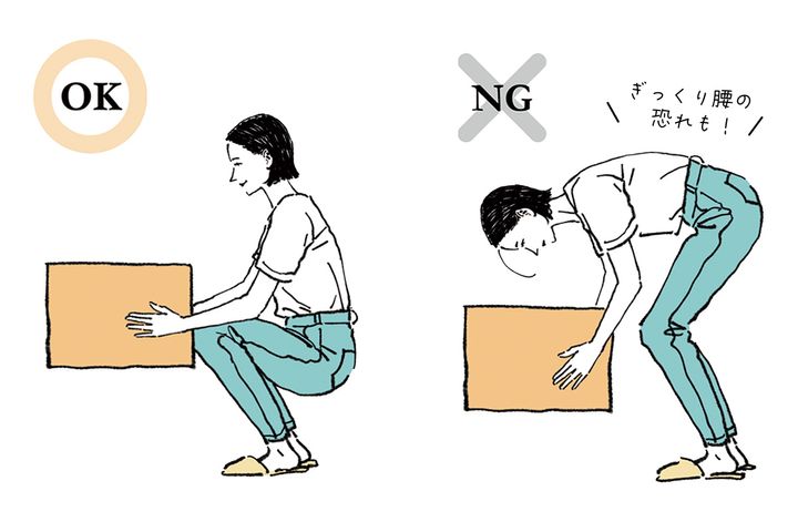 物を取るときは、しっかり股関節を曲げてしゃがんで取るようにしましょう。お尻や脚の筋肉を効率よく使えることで、腰への負担もなくせるので良いことしかありません。
