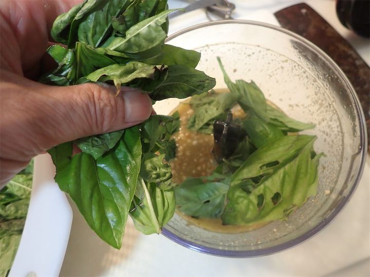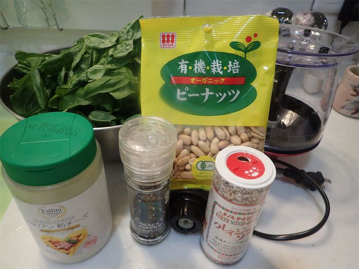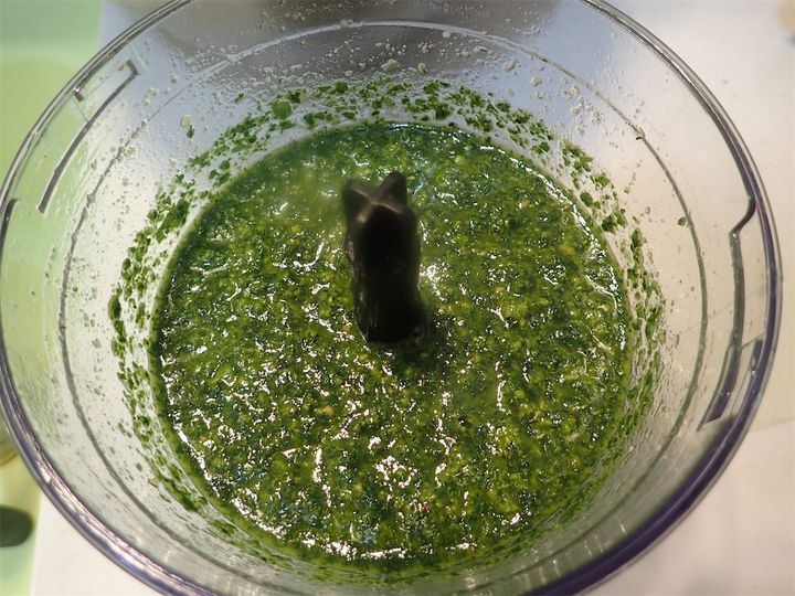 それ以上多くなると、ミキサーを動かすときに発生する熱でバジルの色が悪くなります。