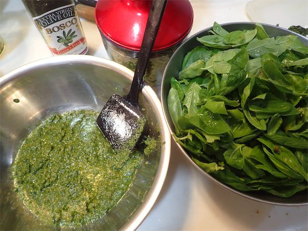 自家菜園でバジルが大量に採れたときや、直売所などで大量のバジルがお安く手に入ったときは、ジェノベーゼ(バジルソース)をぜひ。