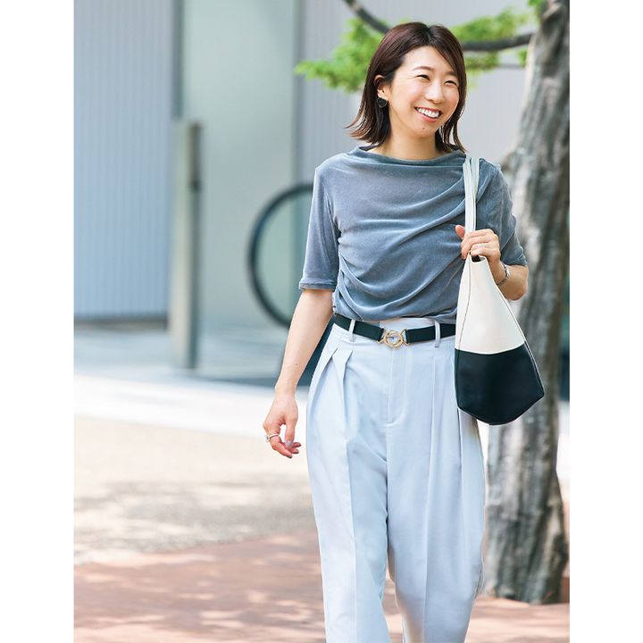 ▶︎【夏の通勤SNAP】キレイめ上手ママは「白カットソーでブラウス見え」がポイント